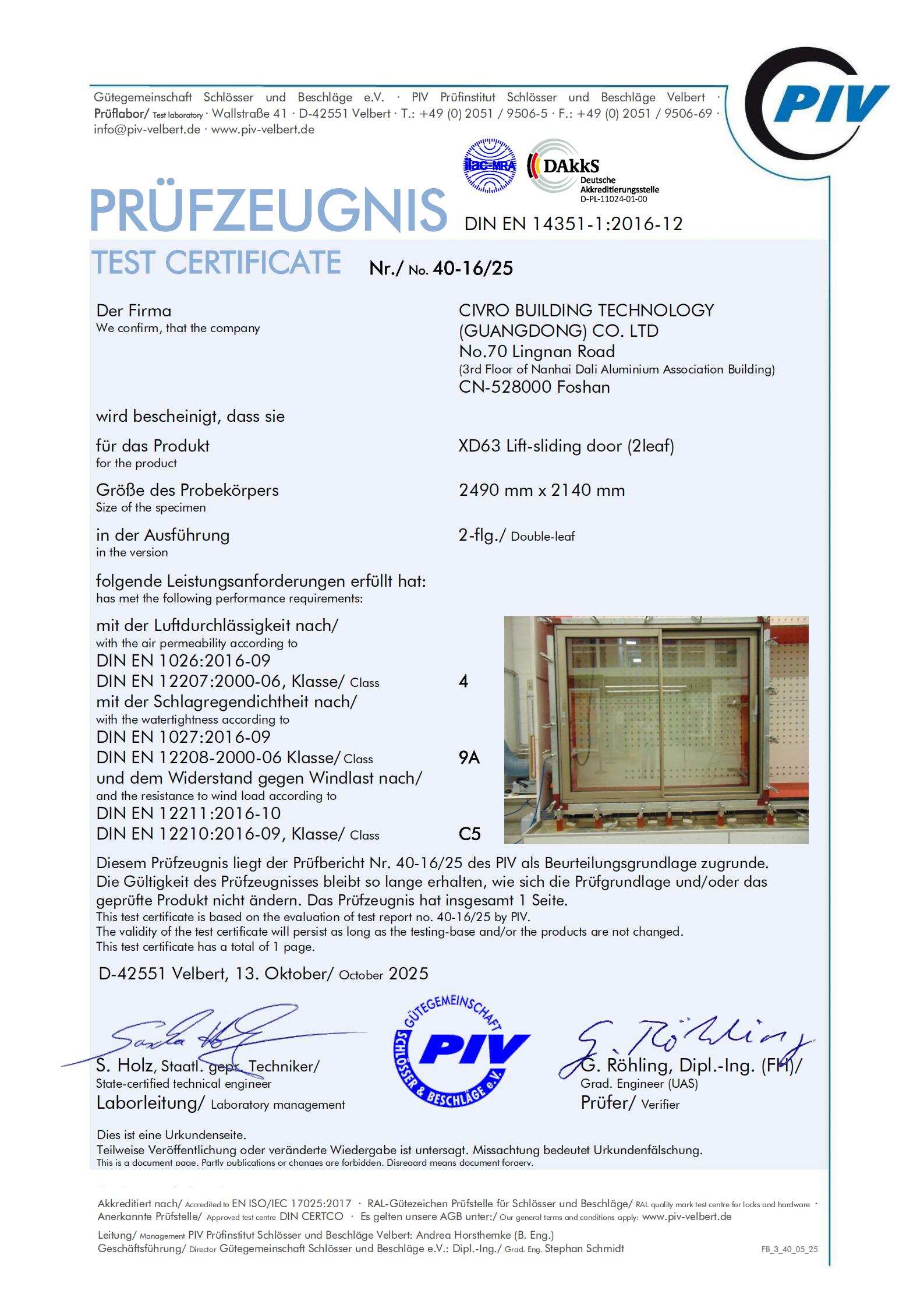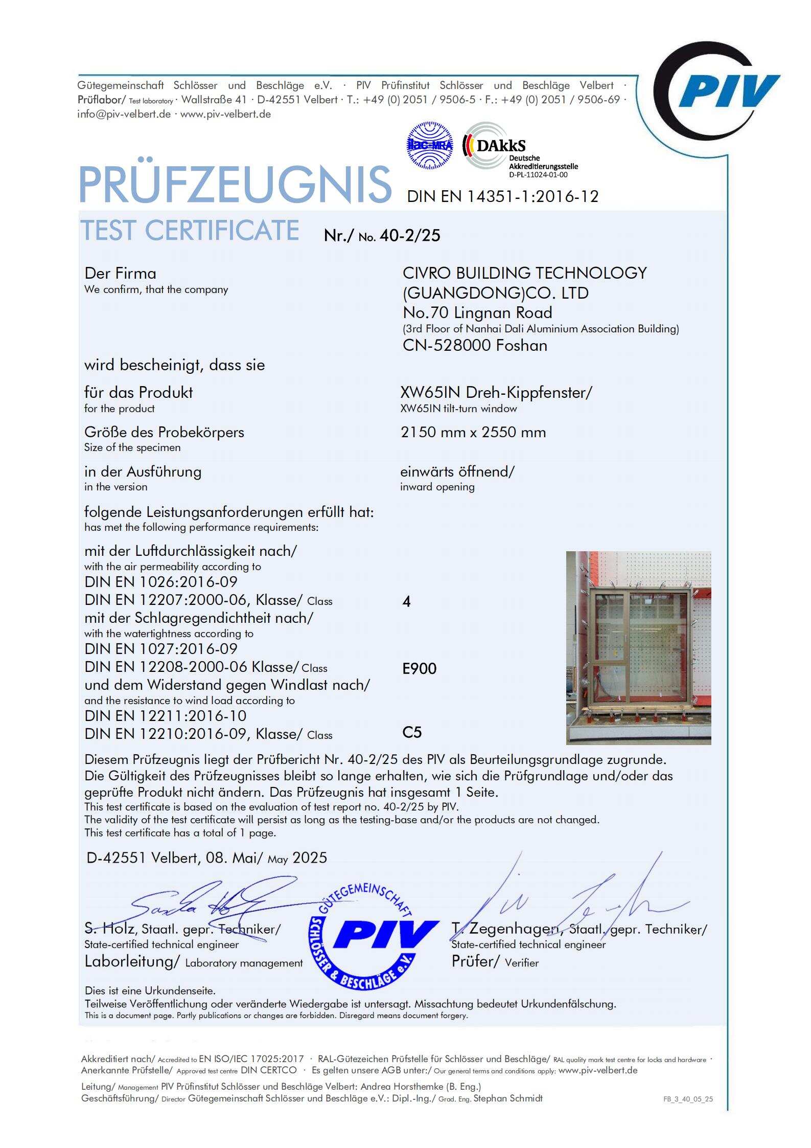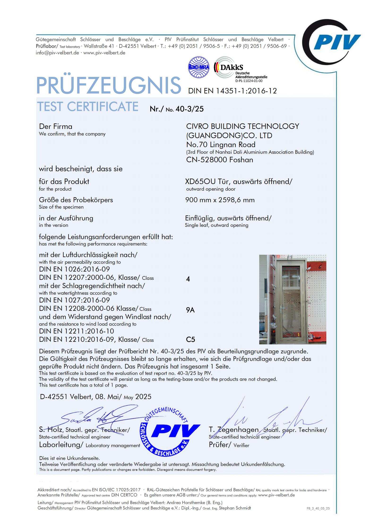 “Certification from a DAkkS-accredited PIV institute confirms that our engineering meets the highest international standards. Architects and developers can specify CIVRO systems knowing they deliver consistent performance under real-world conditions,” said CIVRO CEO Mr. Ken Tam.