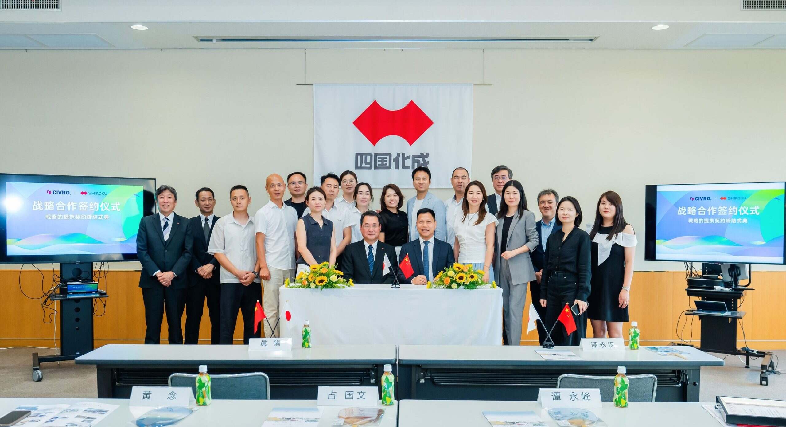 During the ceremony, Mr. Manabe (President of SHIKOKU KASEI Group), Mr. Endo (Head of Sales Headquarters), Mr. Manda (Head of Business Promotion Headquarters), Mr. Kimura (Head of Overseas Sales), Mr. Zhang (GM of Shikoku Kasei Shanghai), and Mr. Tan (Chairman of CIVRO) delivered brief speeches. They expressed their high expectations for the future collaboration between the two companies.